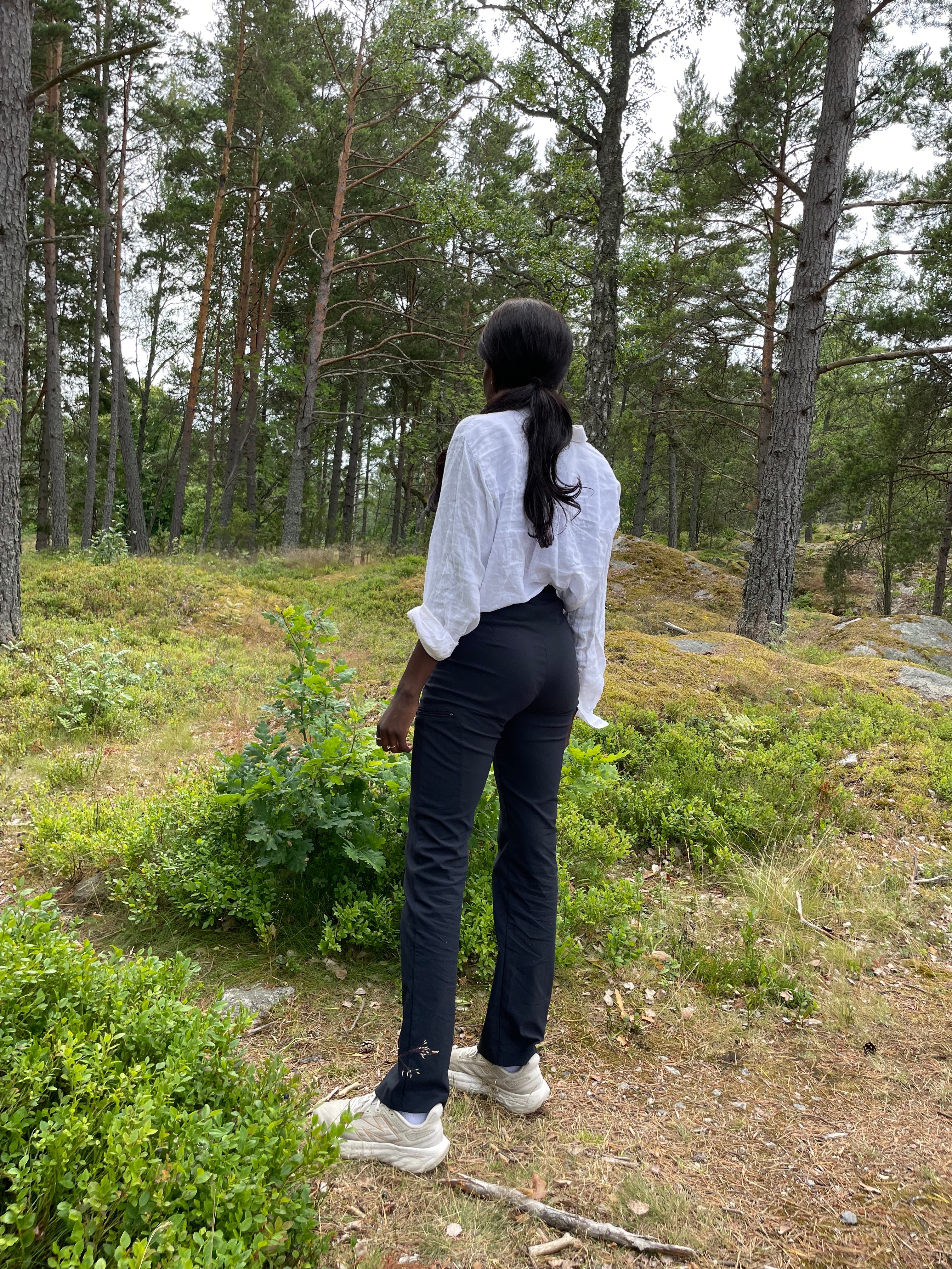 Dressade vandringsbyxor som funkar på jobbet och på hundpromenader. Sitter snyggt och har hög midja vilket är toppen!